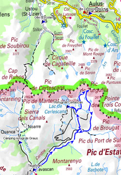 En aquesta ruta fem el recorregut integral que feien servir els jueus per fugir des de Aulus-Les-Bains a Tavascan, i els republicans pel Port de Tavascan fins a Bidous. Dormirem en bordes i refugis carregats d'història. |